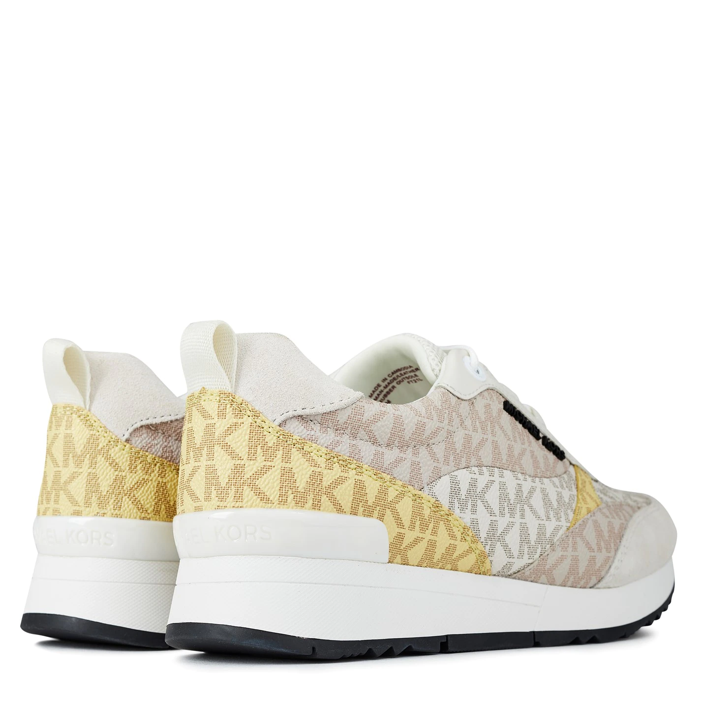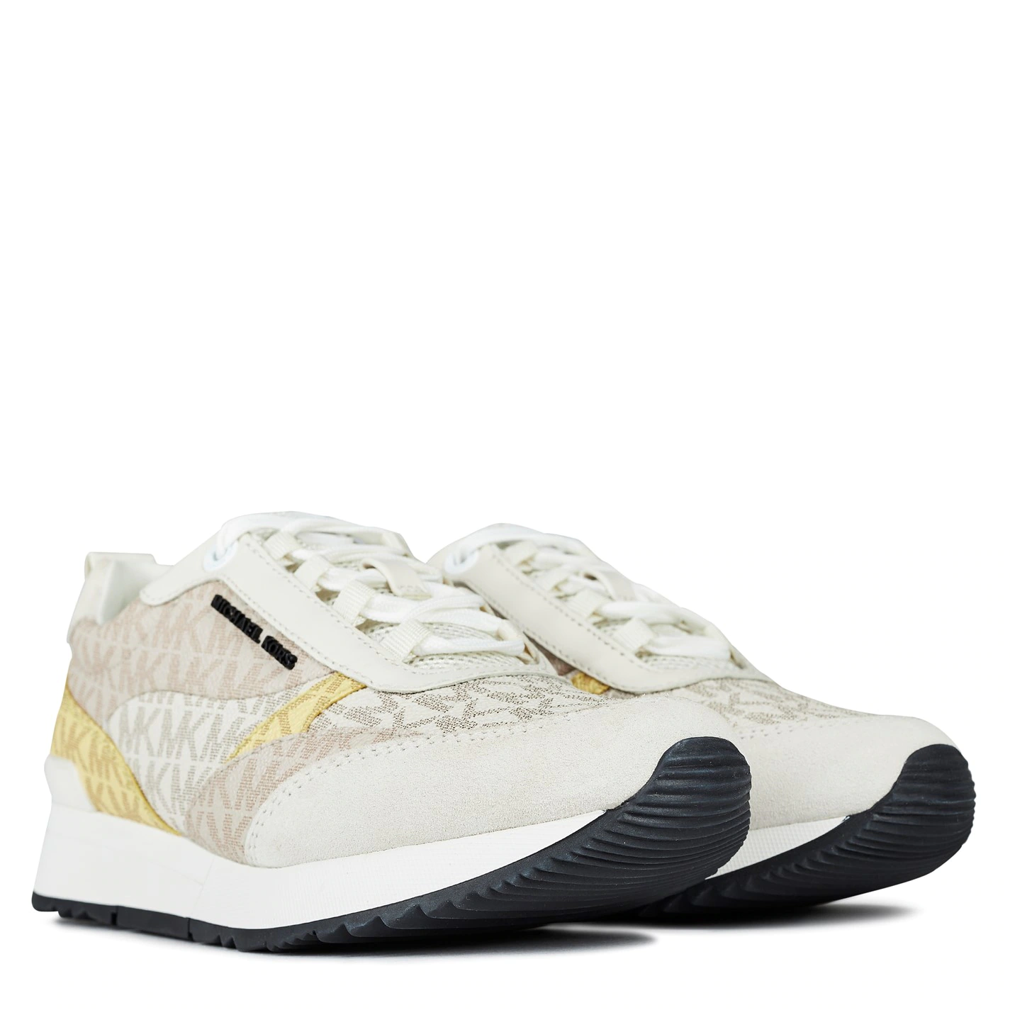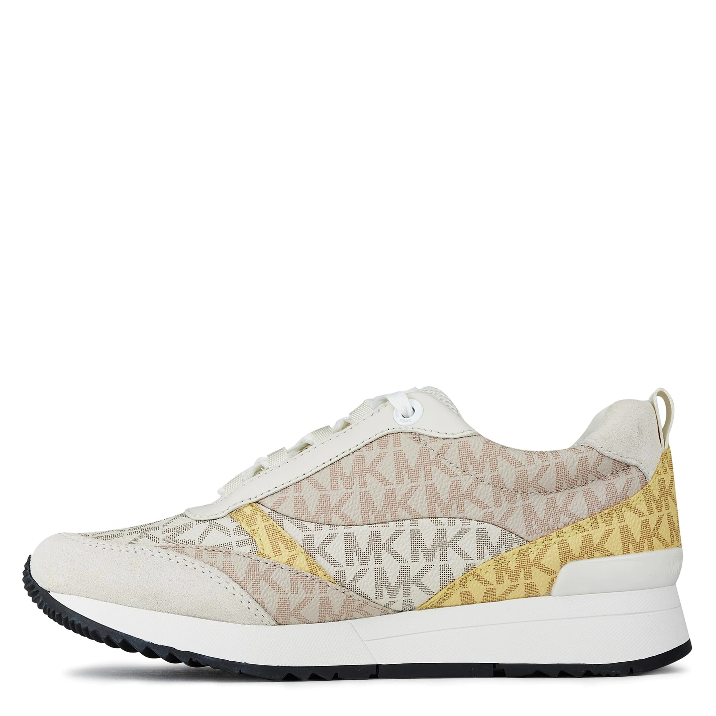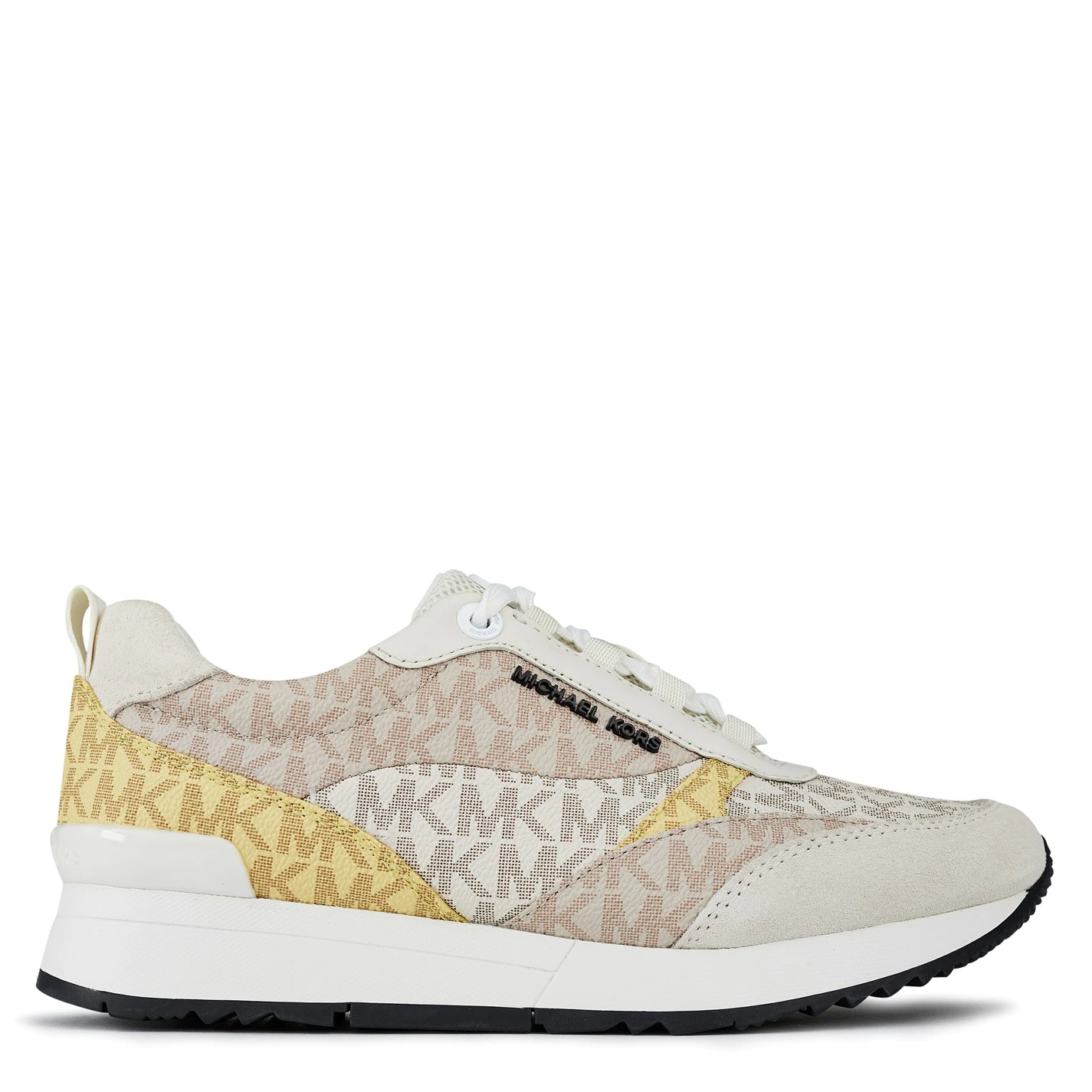 With a designer aesthetic, this low profile silhouette has been crafted with a coated canvas fabrication boasting a repeated MK logo paneling to the upper. Adorned with synthetic overlays for a luxe feel, this pair offer a full lace fastening and are set upon a flat rubber sole for all day comfort and traction. The look is finished with Michael Kors lettering embellished to the sides for a designer touch.