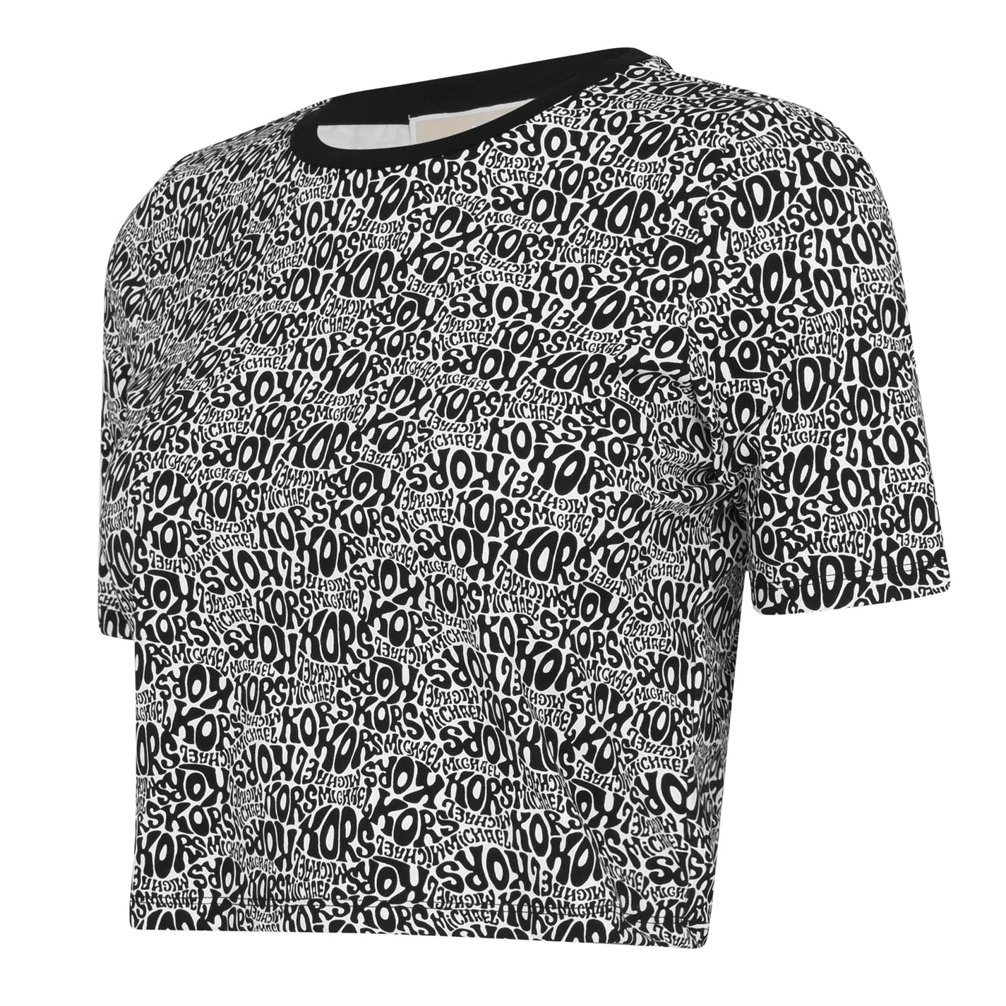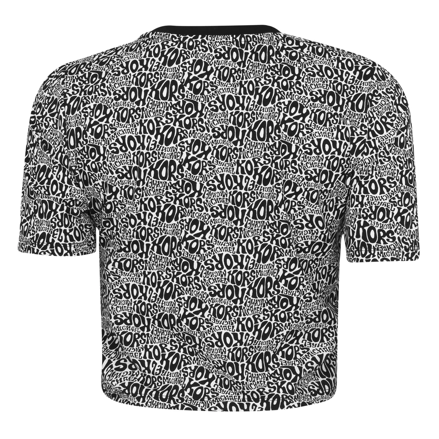 Add a statement tee to your collection with the Allover Logo Crop Top by Michael Kors. With an allover print of the brand’s signature is a 70’s aesthetic typeface, this monochrome tee adds a designer stamp to an everyday look. #constructed in recycyed nylon, this sustainable style is cut in a flattering crop, adding a contemporary touch to the tee. Style with a denim jean for a dressed down vibe.