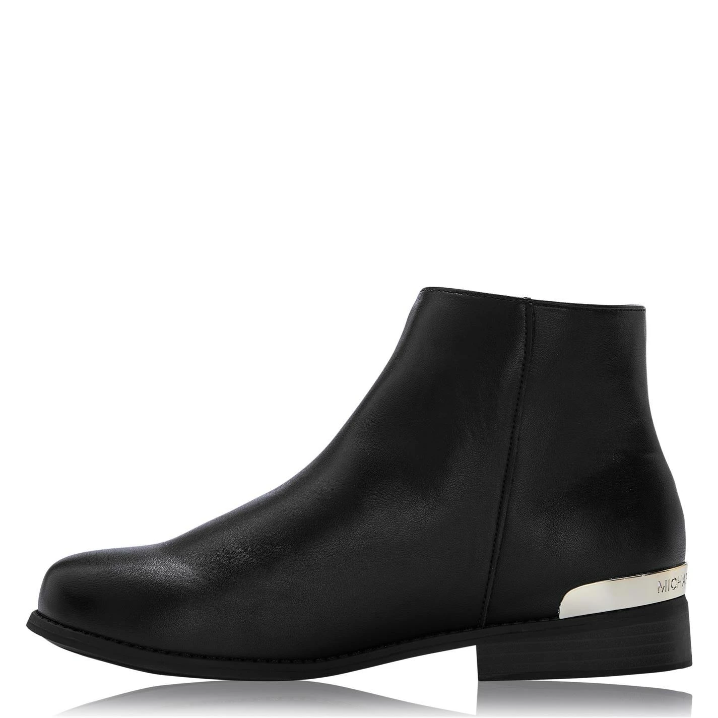 Update your child attire with the Emma Boot from Michael Michael Kors. Cut in an ankle high silhouette, this boot styles a Faux Leather fabrication to the exterior with an almond shaped toe and tonal size zip fastening for a secure fit. Styled with a gold-toned zip fastening on the outer silhouette adorned with an MK banded pull tab, this boot is sat upon a low block heel and is complete with a hardware accent to the upper heel. Pair with your favourite dress and tights for a day-to-evening look.