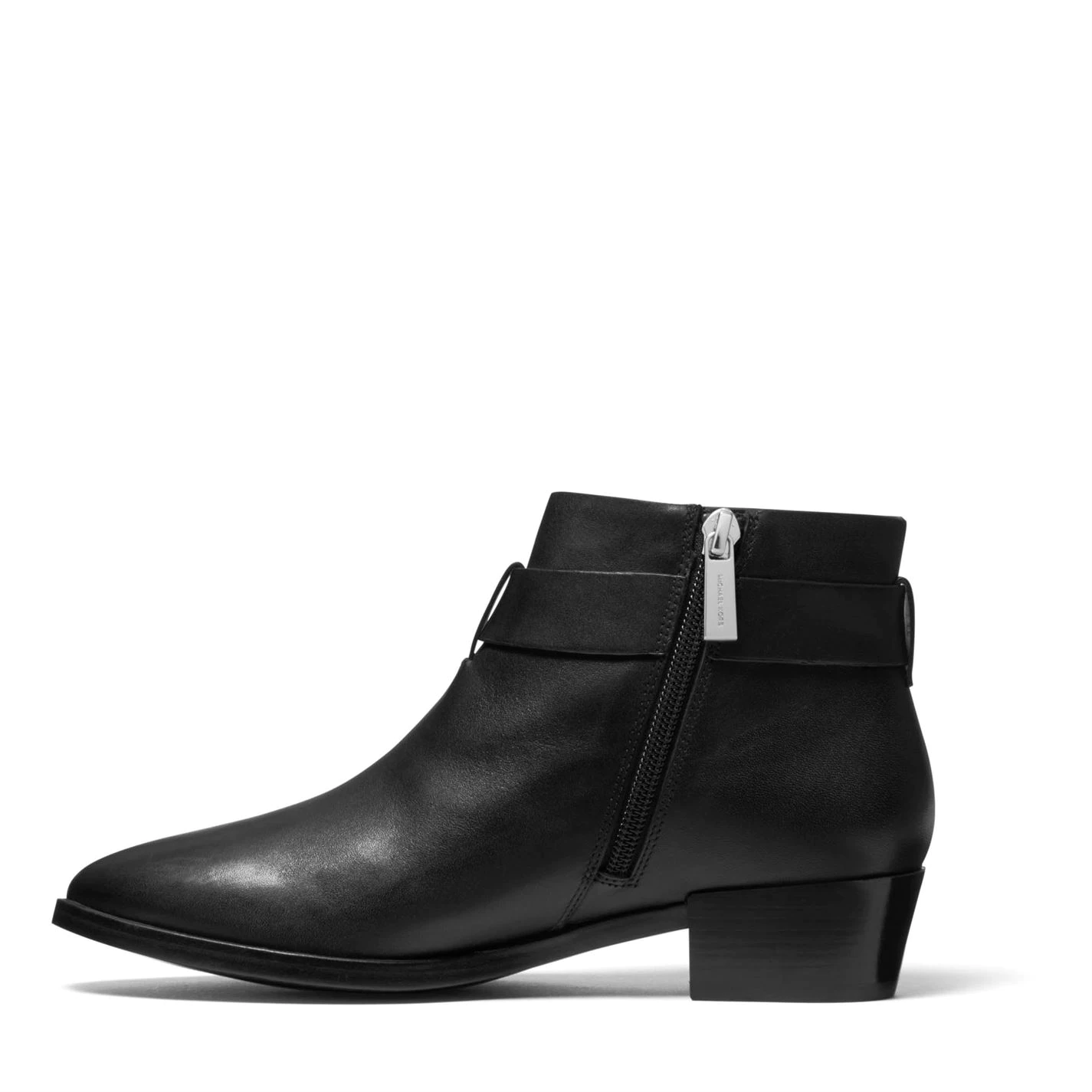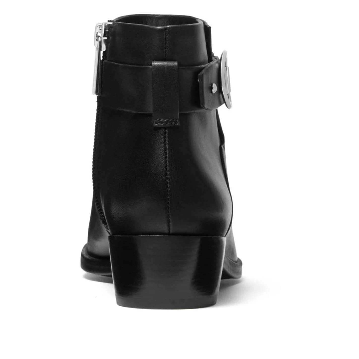The Michael Michael Kors Harland Ankle Boots are a great addition to your casual wardrobe, featuring a side zip fastening coupled with a cushioned insole for all day comfort. A pointed toe along with a block heel give a stylish look, a strap and buckle detail with a gunmetal tone MK logo completes the look.