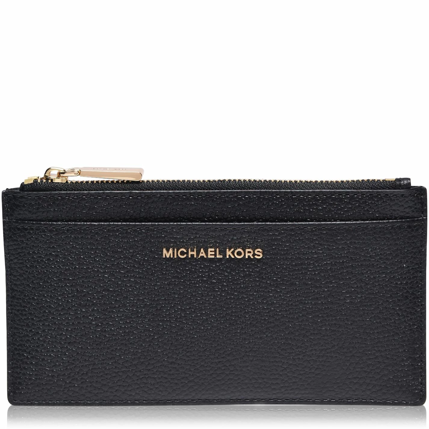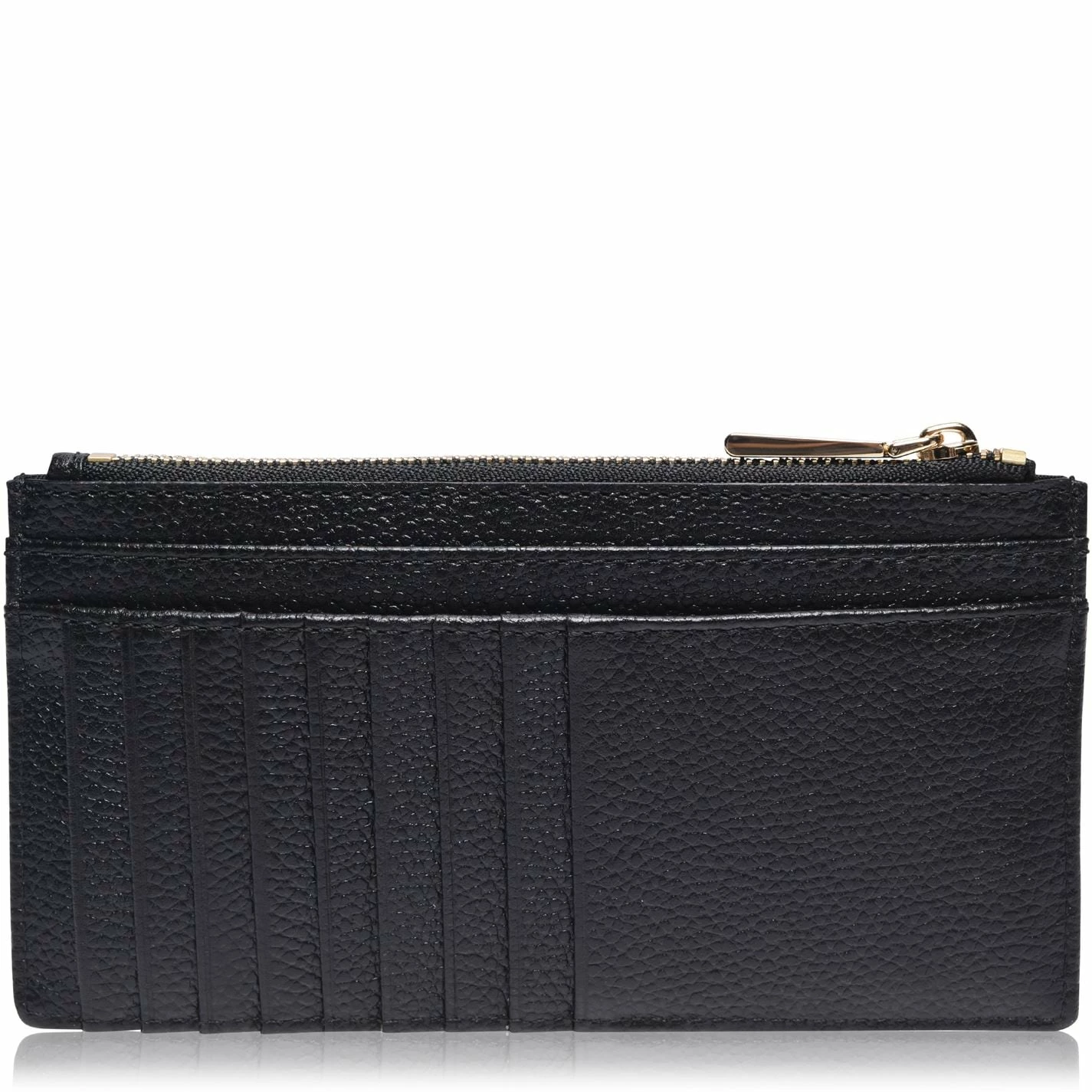 Update your day to drinks attire with this Jet Set Card Holder from michael Michael Kors. Crafted in a grained leather material, this card holder features an array of card/note holders to the outside and a zipped coin holder pocket in the middle. The look is finished with the signature Michael Kors branding to the front in a gold-toned metal. H: 9cm x W: 17.5cm.