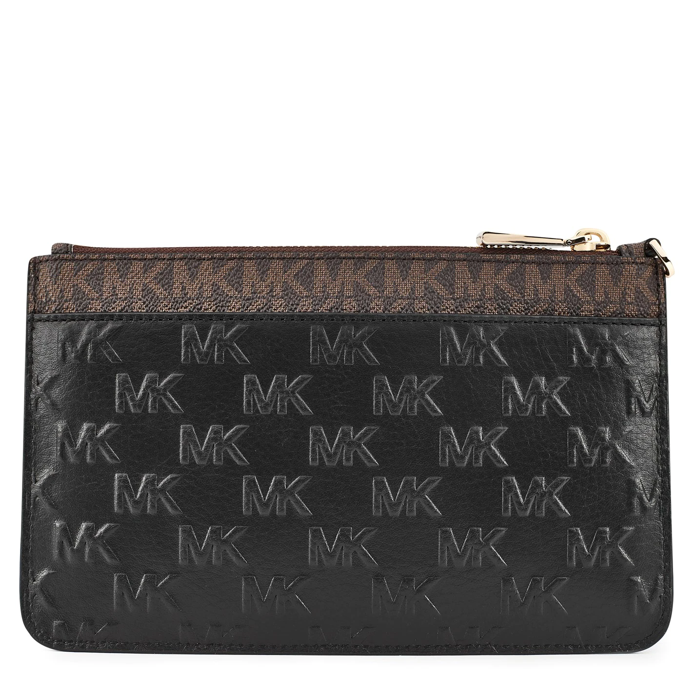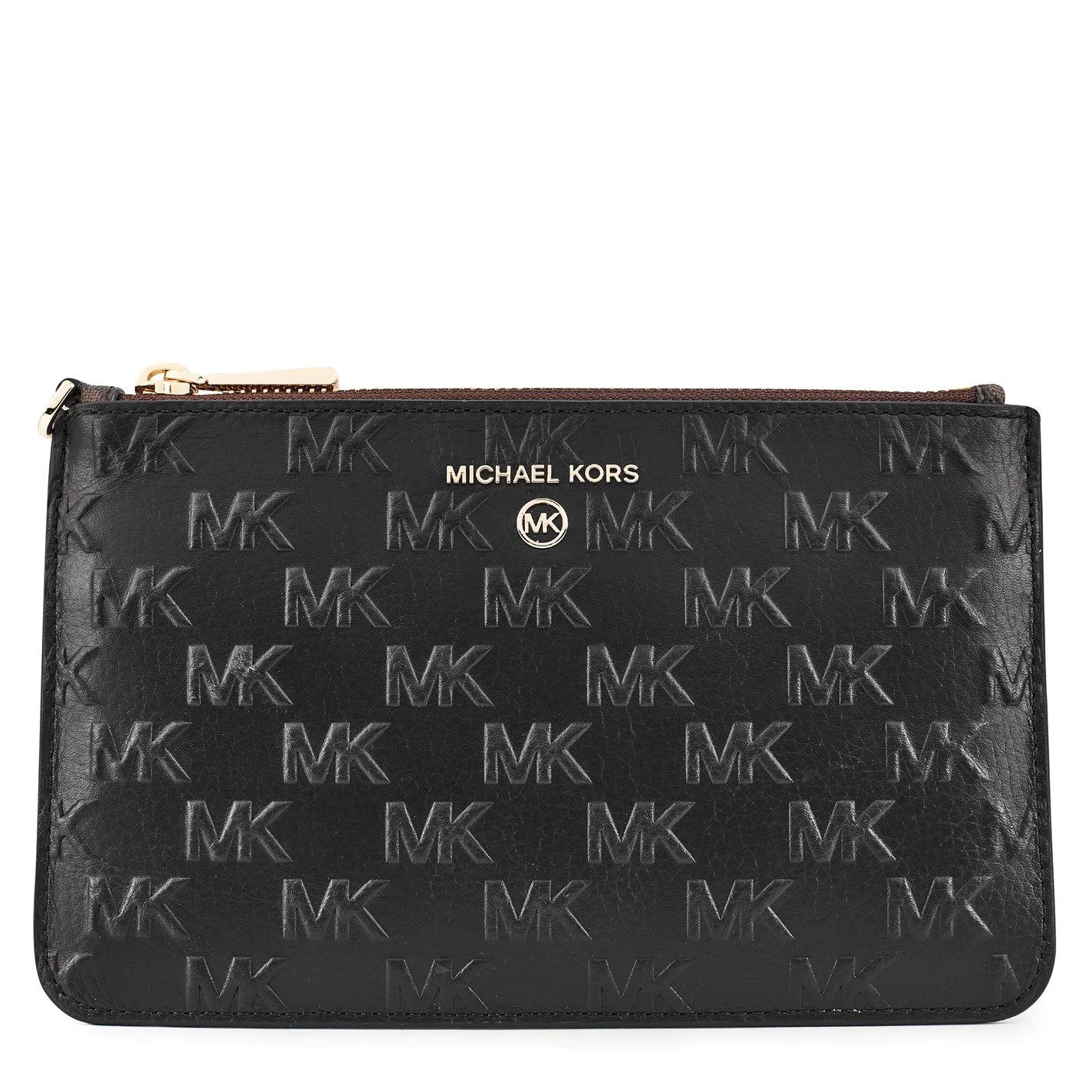 The Michael Michael Kors Jet Set Medium Wristlet Bag is perfect for your next evening out, crafted with a zip fastening main compartment along with an internal slip pocket that provides ample space for your evening essentials, the classic MK monogram embossed to the outer along with the Michael Kors branding in golf tone hardware to the side completes the look.