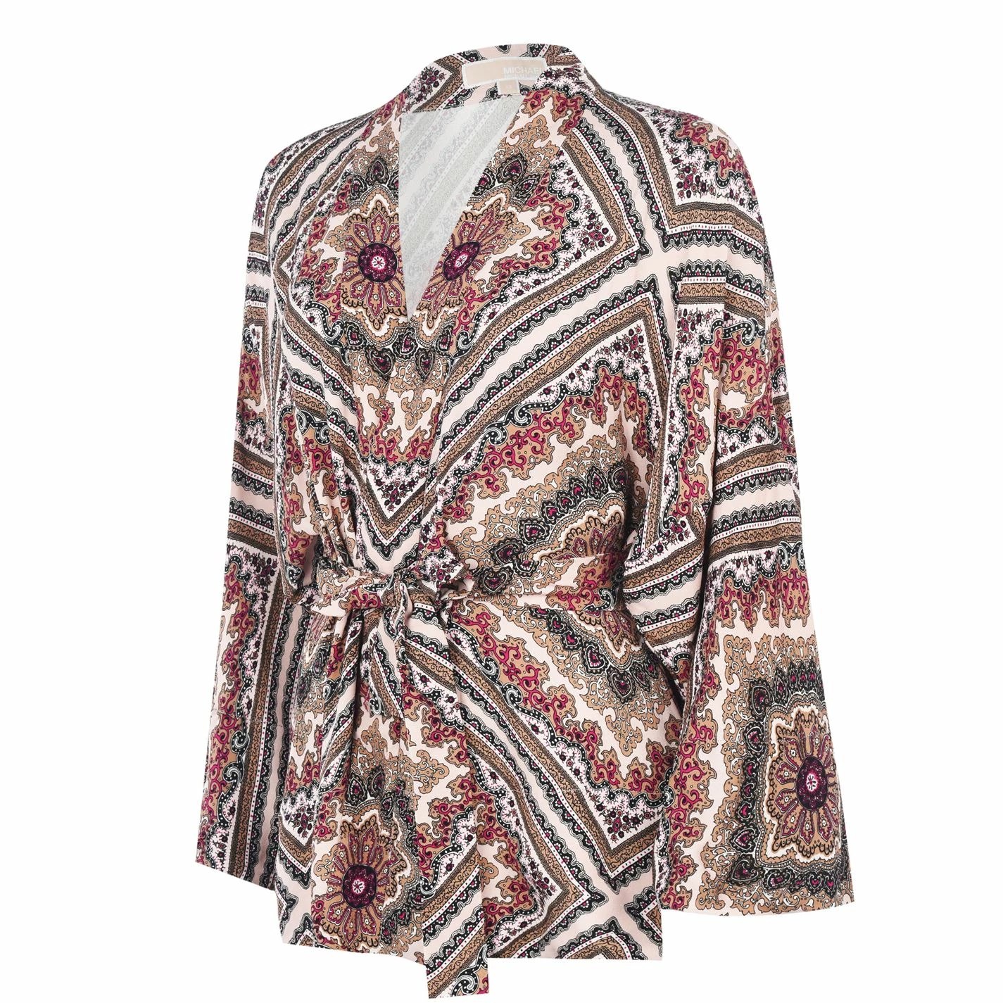 Complete your stylish ensemble with the Michael Kors Medal Kimono. Constructed with a relaxed lapel and tie waist for a classic look whilst the long wide sleeves and vintage print give the kimono a trendy finish which will be sure to compliment your attire.