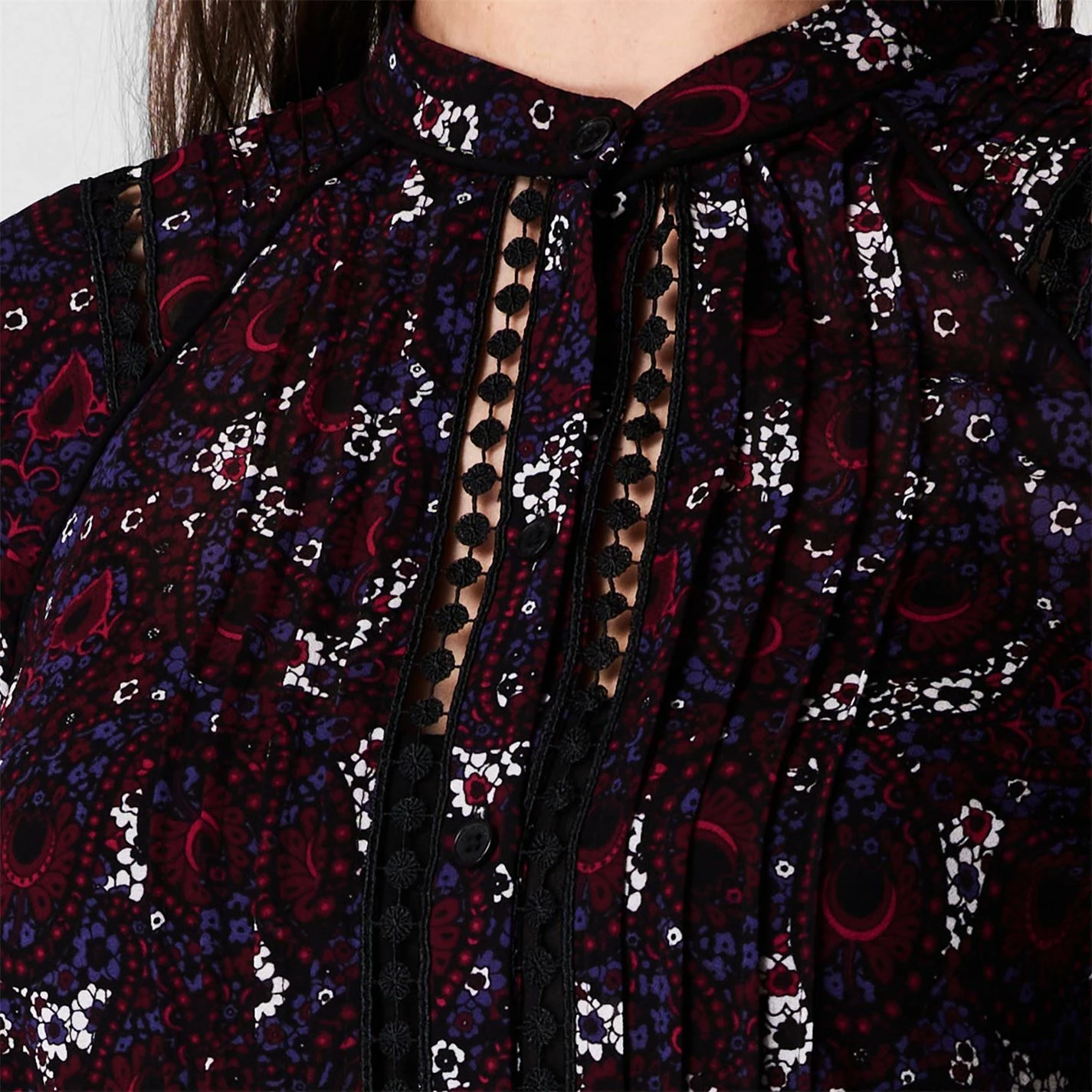 Upgrade your wardrobe with the Michael Kors Paisley Blouse. The design features long button cuffed sleeves, a high neck and lace detailing. The paisley print gives the blouse a feminine, fashionable look and would be the perfect option for days out shopping with friends or for a day in the office.