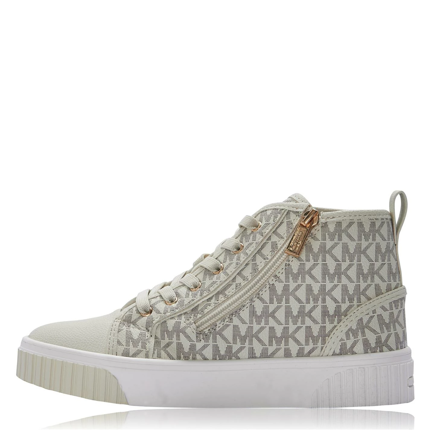 Invest in your everyday shoe collection with the Michael Kors Skate High Top Trainers. Designed with a canvas upper and rubberised toe cap to help achieve a classic skater aesthetic, these high tops feature an all-over monogram print and further branding at the back of the heel and on the sole. Complete with a side zip detailing and lace up fastening, these trainers will complete your stylish ensemble.