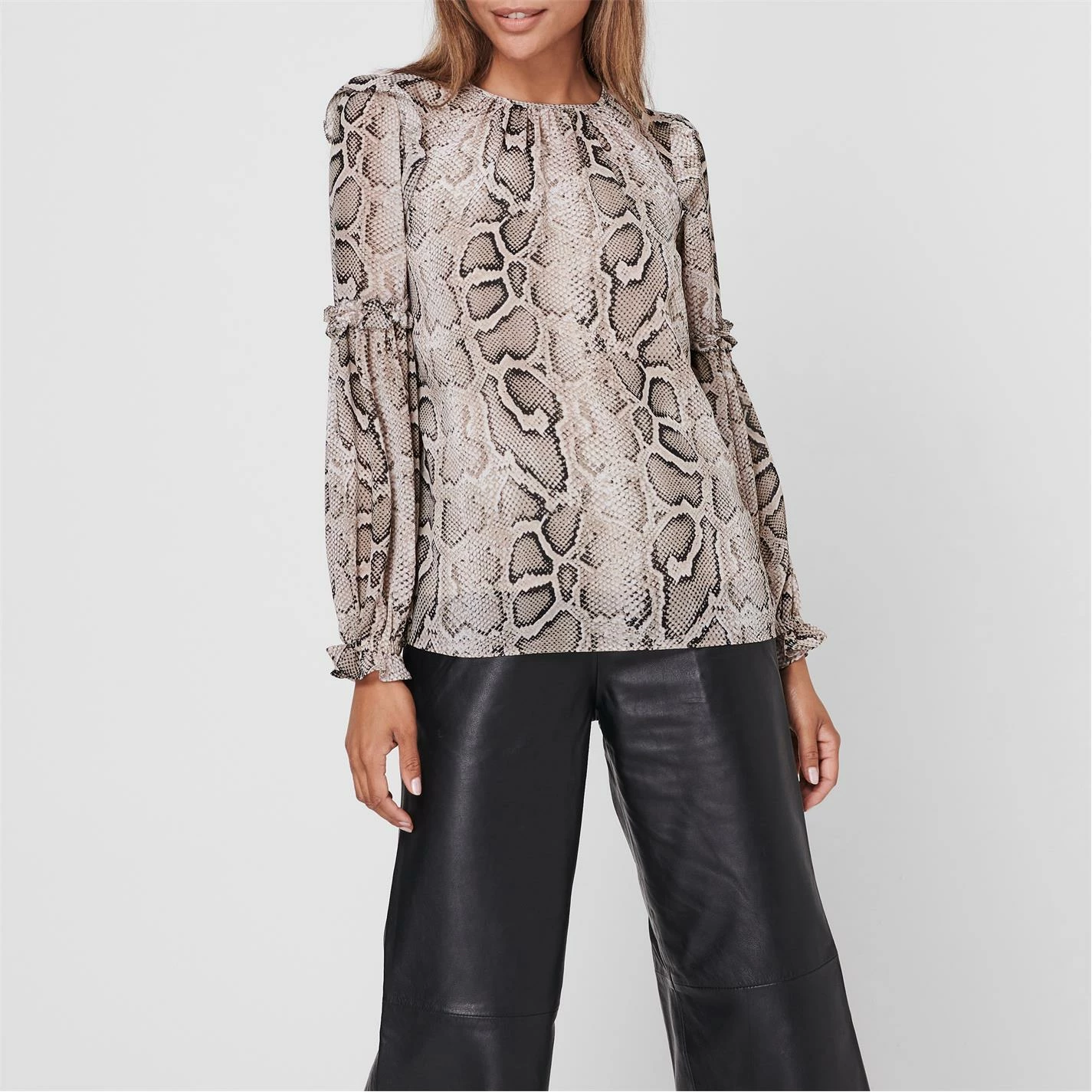Enhance your collection with this MICHAEL Michael Kors Snake Ruffle Long Sleeve Blouse. Constructed with a crew neckline and long sleeves with comfortable elasticated hems for a classic look, it features back button fastening for a secure fit. This blouse is an all over print design with a signature logo and is complete with MICHAEL Michael Kors branding.