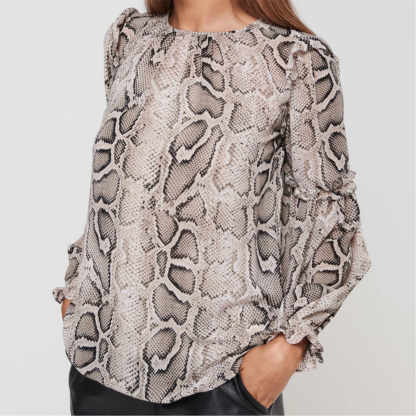 MICHAEL Michael Kors Snake Ruffle Long Sleeve Blouse
