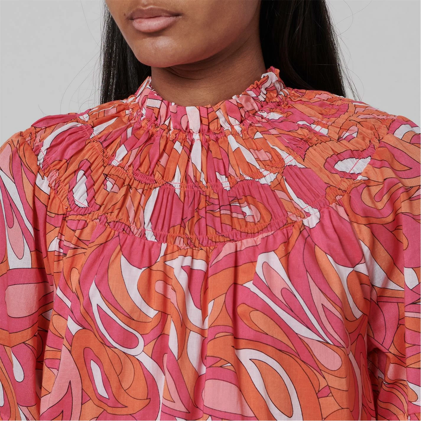 Add a vibrant print to your daytime dresses with the Swirl Mini Dress from Michael Kors. Featuring a psychedelic swirl print and tiered cut, this dress adds a 70’s style aesthetic to a modern cut dress. With long shirred cuff sleeves and neckline, style this mini with minimal accessories to keep all attention on this bold statement dress.