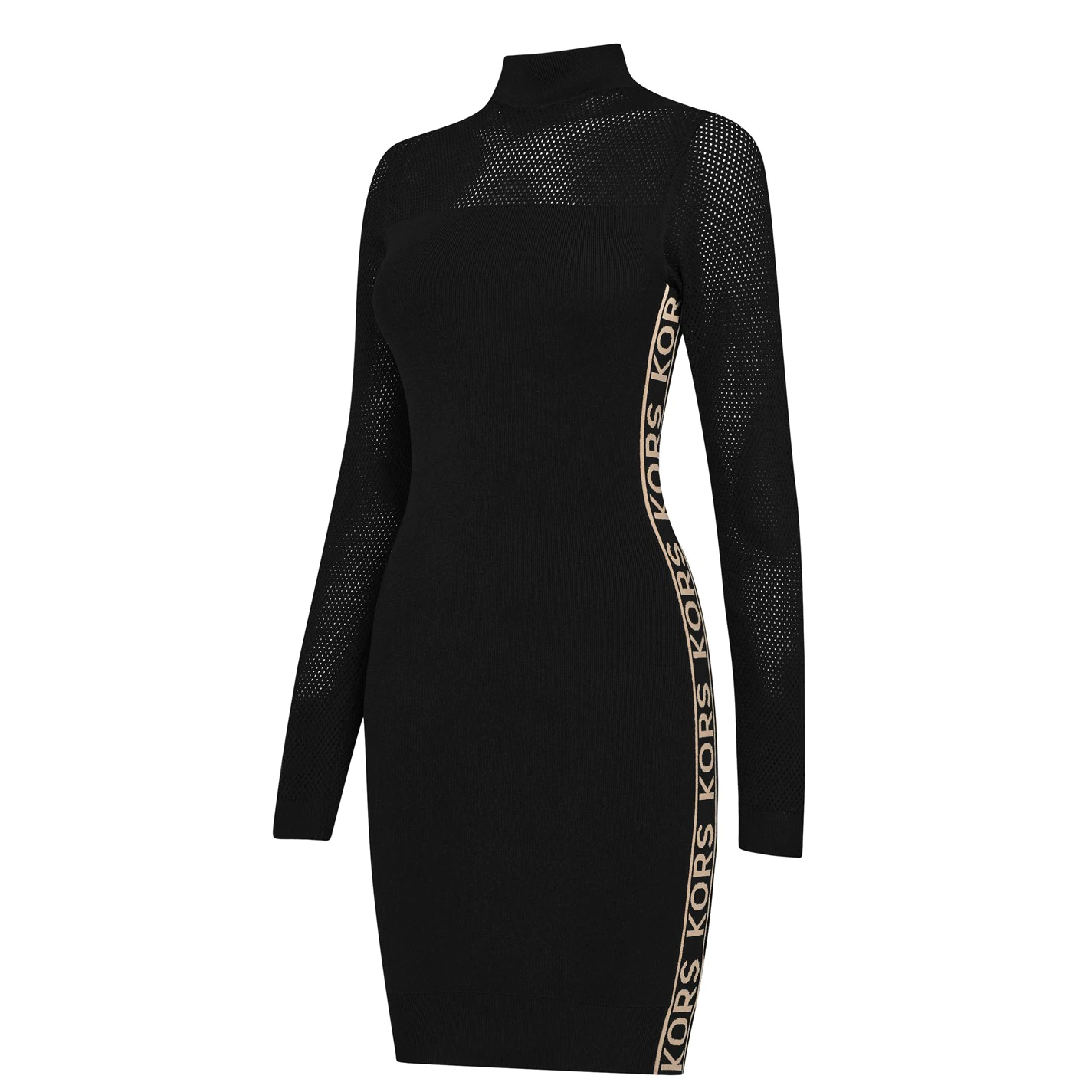 Enhance your collection with this MICHAEL Michael Kors Tape Mesh Dress. Constructed with back zip fastening and long sleeves for a classic look, it features comfortable ribbed trims and mesh panelling for breathable ventilation. This dress is a solid colouring throughout with signature logo tape and is complete with MICHAEL Michael Kors branding.