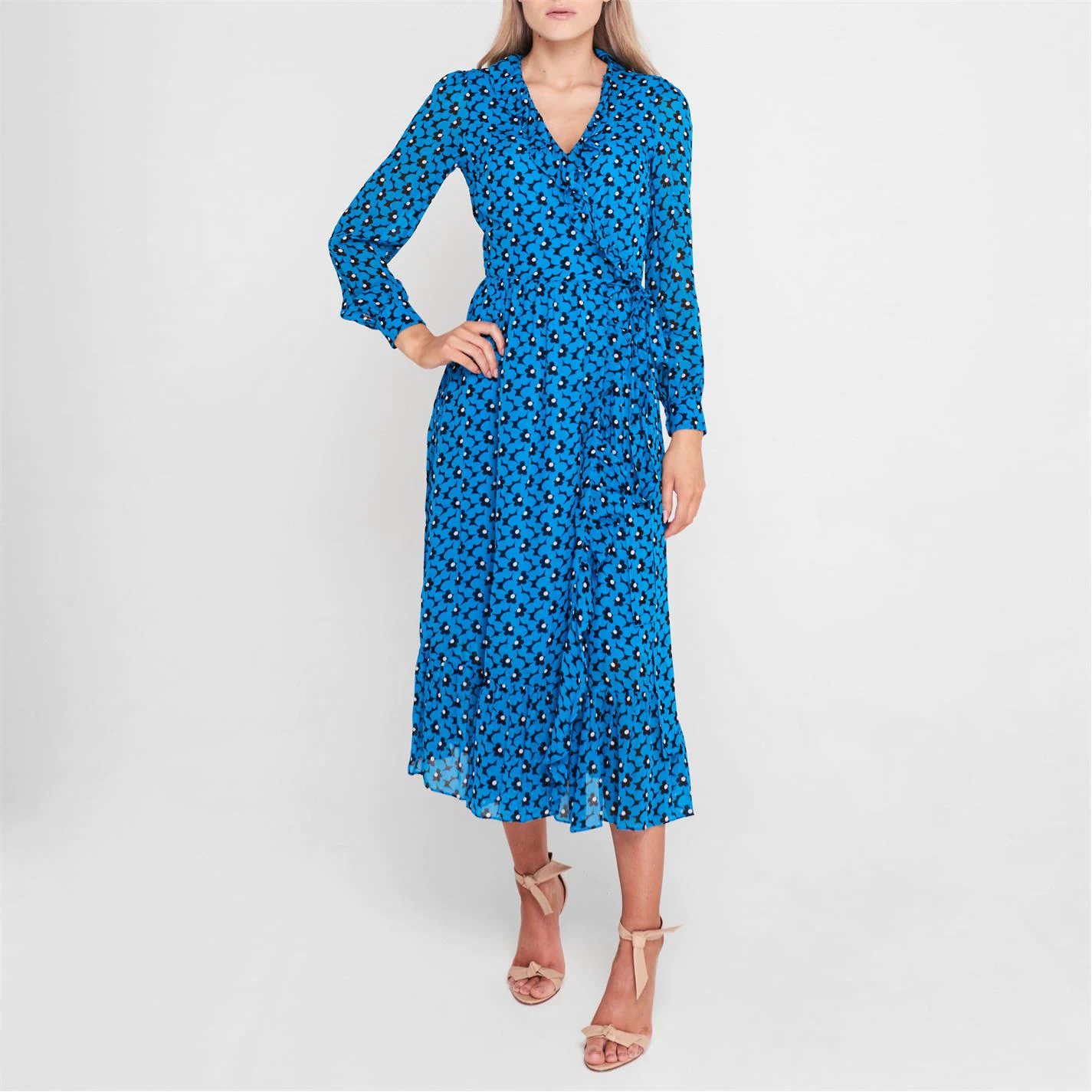 Enhance your collection with this MICHAEL Michael Kors Whitney Dress. Constructed with long sleeves and an adjustable V neckline for a classic look, it features tie fastening to the waist for a flattering fit. This dress is an all over print design with a signature logo and is complete with MICHAEL Michael Kors branding.